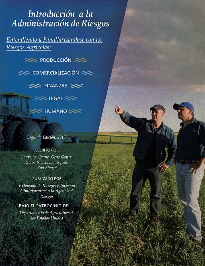 Este manual está diseñado para mejorar las habilidades de gestión de riesgos de los agricultores y ganaderos estadounidenses. Existe una amplia gama de herramientas de gestión de riesgos establecidas listas para ser utilizadas y siempre se están desarrollando nuevas herramientas. Al conocer y utilizar estas herramientas, los productores de cultivos y ganado pueden generar la confianza necesaria para enfrentar los riesgos y las emocionantes oportunidades del futuro.